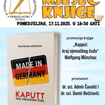 17/11/2025U ponedjeljak 17.novembra u 18i30 u sali Biblioteke "Derviš Sušić" Tuzla održat će se promocija knjige "Kaputt, kraj njemačkog čuda", uglednog ekonomskog analitičara Wolfganga Münchaua. O knjizi će govoriti: sci. Admir…