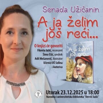 22/12/2025U utorak 23.decembra 2025. godine u 18 sati u Biblioteci “Derviš Sušić” Tuzla održati će se promocija knjige “A ja želim još reći…” Senade Užičanin. Na promociji će govoriti: Fikreta…