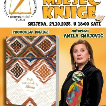 28/10/2025U okviru “Mjeseca knjige” u Biblioteci “Derviš Sušić” Tuzla u srijedu 29.oktobra u 18 sati održati će se promocija knjige “Duh bosanskog ćilima”, autorice Amile Smajlović. Knjiga “Duh bosanskog ćilima”…