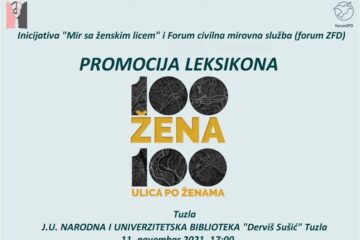 12/11/2021Leksikon „100 žena – 100 ulica po ženama“ promovisan je u četvrtak, 11. novembra 2021. godine u prostorijama Narodne i univerzitetske biblioteke „Derviš Sušić“ Tuzla. Organizator promocije je UG „HO…
