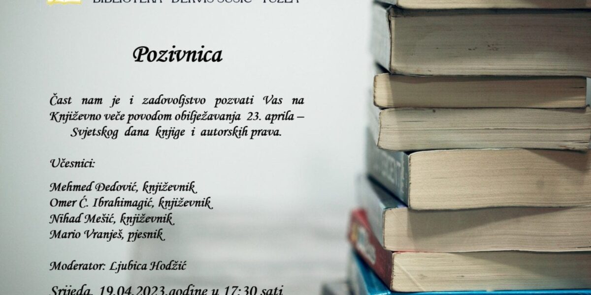 Read MoreU Narodnoj i univerzitetskoj biblioteci “Derviš Sušić” Tuzla u utorak, 4. jula 2023. godine u 19 sati održati će se multimedijalno veče sa promocijom knjige “Godine u vladavini ćilibara” bosanskohercegovačkog pisca i reditelja Šemsudina Gegića. U programu učestvuju: – Dragana Bošković, Beograd – Šemsudin Gegić, Milano Moderatorica: – Sanja Dukić, Tuzla Osim promocije knjige, bit će održano […]