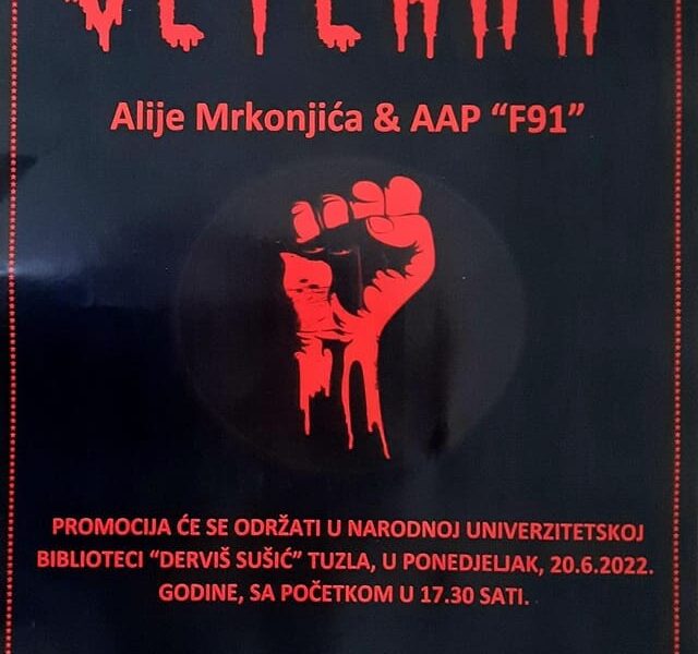 Read MorePromocija knjige Alije Mrkonjića “Veteran” održati će se u ponedjeljak 20.juna 2022.godine u 17 i 30 sati u Biblioteci “Derviš Sušić” Tuzla. O knjizi će govoriti Rensa Berbić – Mišić, profesor, Nermina Hasić, profesor, Mirza Mujagić, moderator i sam autor Alija Mrkonjić. Roman “Vetreran” je žanrovski koncipiran kao drama / misterija a podžanrovski kao horor. […]