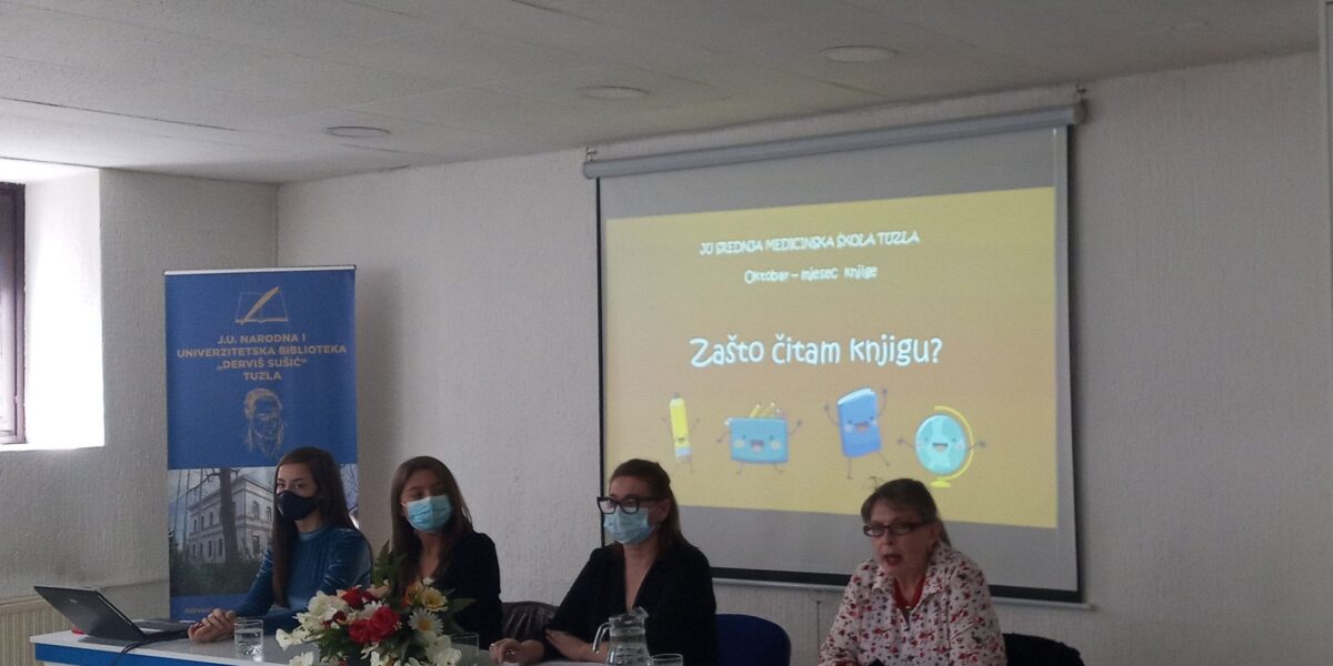 Read MoreU okviru aktivnosti obilježavanja Mjeseca knjige, Narodna i univerzitetska biblioteka “Derviš Sušić” Tuzla i Aktiv profesora jezika Srednje medicinske škole Tuzla, organizovali su danas, 25.10.2021. okrugli sto na temu: “Zašto čitam knjigu?”. Cilj ove aktivnosti je razvijanje ljubavi prema knjizi i jačanje svijesti o potrebi čitanja. Ukazalo se na važnost čitanja knjige kako na razvojnom […]
