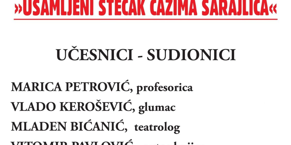 Read MoreČast nam je da vas u Mjesecu knjige pozovemo na omaž kreativcu, piscu i slikaru, povodom predstavljanja knjige USAMLJENI STEĆAK ĆAZIMA SARAJLIĆA Učesnici: MARICA PETROVIĆ, profesorica VLADO KEROŠEVIĆ, glumac MLADEN BIĆANIĆ, teatrolog VITOMIR PAVLOVIĆ, autor knjige NEDIM HRUSTANBEGOVIĆ, novinar, medijator Četvrtak, 28. oktobar 2021. godine u 17 sati Narodna i univerzitetska biblioteka «Derviš Sušić» Tuzla