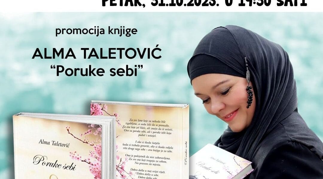 Read MoreU okviru Mjeseca knjige 31.oktobra (Petak) u 19:30 u Biblioteci “Derviš Sušić” Tuzla održati će se promocija knjige autorice Alme Taletović. Promotor knjige: Sumeja Đurić, prof. O knjizi: Ponekad nas život slomi – ali upravo tada počinjemo razgovarati sa sobom. Knjiga „Poruke sebi“ nastala je iz tišine, iz snage, iz potrebe da se pronađe […]