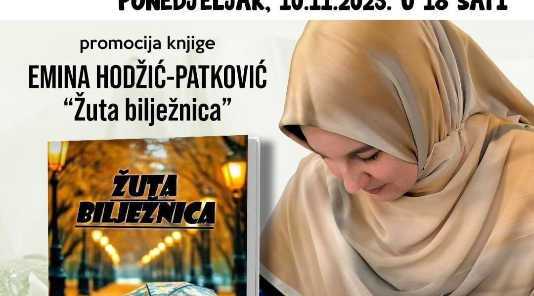 Večeras 10. oktobra u 18 sati u sali Biblioteke “Derviš Sušić” Tuzla održat će se promocija knjige “Žuta bilježnica”, Emine Patković. Sa autoricom će o knjizi razgovarati direktorica Biblioteke Sanja Dukić. Ponekad je dovoljno samo nekoliko ispisanih stranica da promijene naš pogled na život. „Žuta bilježnica“ nije običan roman – to je priča o […]