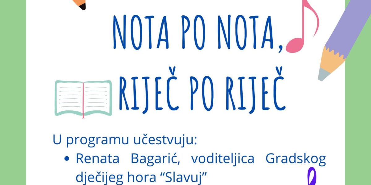 Read MoreU organizaciji Dječijeg hora “Slavuj” i Biblioteke “Derviš Sušić” Tuzla u srijedu 2.aprila 2025.godine u 11 sati u Biblioteci “Derviš Sušić” Tuzla održati će se književno-muzička radionica “Nota po nota, riječ po riječ”. U program učestvuju: Renata Bagarić, voditeljica Gradskog dječijeh hora “Slavuj” Mara Grbić, književnica 2. april – Međunarodni dan dječje knjige (ICBD – […]