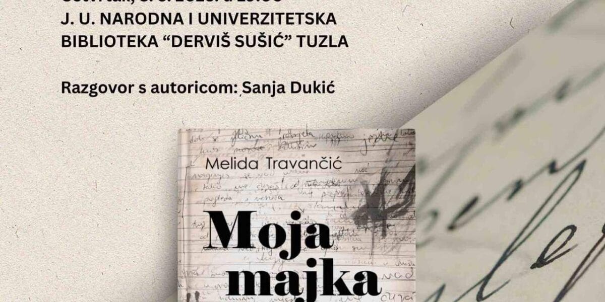 Read MorePromocija knjige Melide Travančić “Moja majka hrani mrtvog psa” održati će se u četvrtak 8. maja u 19 sati u našoj Biblioteci. O knjizi će sa autoricom razgovarati Sanja Dukić, direktorica Biblioteke “Derviš Sušić” Tuzla. Otuđenje, ispraznost rutinirane svakodnevice, egzistencijalne (i psihološke) krize, nemogućnost uspostavljanja komunikacije s drugima, praznina – sve su to teme koje […]