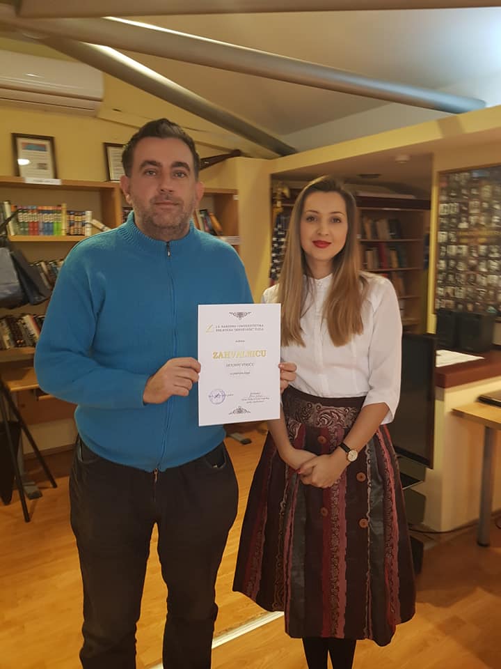 Danas je u Američkom kutku održana dodjela Zahvalnica privatnim licima i pravnim subjektima koji su Biblioteci u toku 2019.godine poklonili knjige, periodične publikacije, brošure i drugu bibliotečku građu, kao i najaktivnijim korisnicima svih odjeljenja Biblioteke za period 2018/2019.godina.