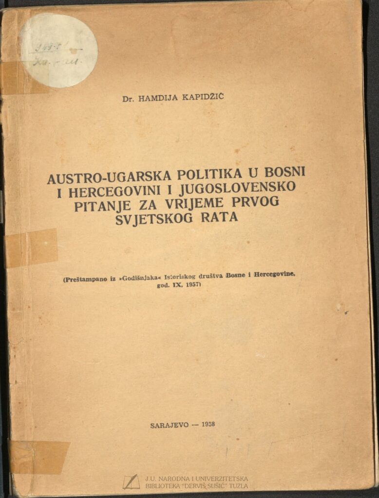 Kapidžić, Hamdija – Austro-ugarska politika u Bosni i Hercegovini i jugoslovensko pitanje za vrijeme prvog svjetskog rata |