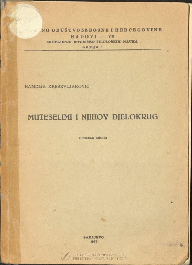 Hamdija Kreševljaković: Muteselimi i njihov djelokrug