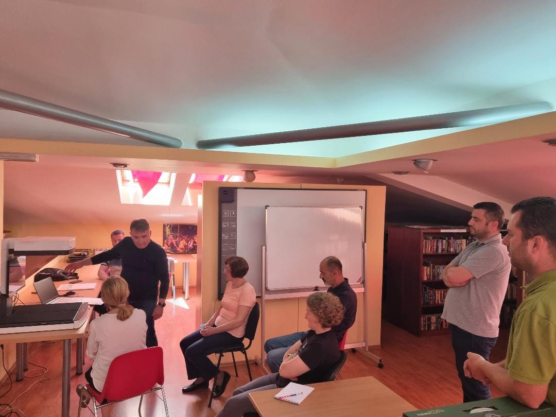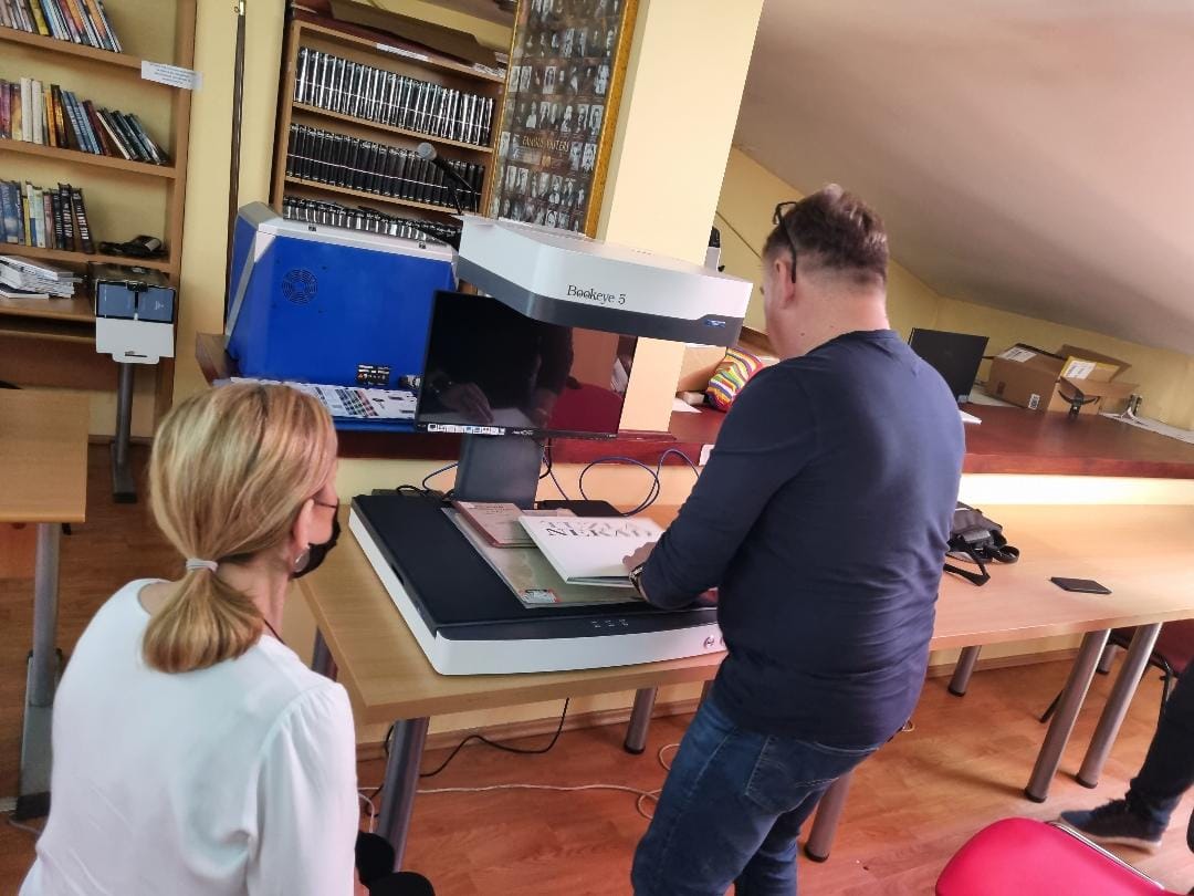 Zaposlenici Biblioteke prošli su obuku rada na skeneru, kako bi usvojili znanja i vještine upravljanja skenerom, te u što skorije vrijeme omogućili građanima pristup digitaliziranim kolekcijama vrijedne građe koju Biblioteka posjeduje.