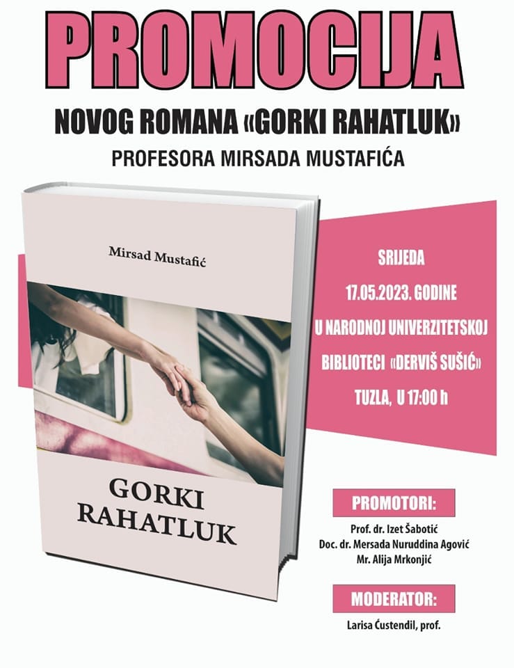 U srijedu 17.maja u 17 sati u sali Biblioteke održati će se promocija knjiga „Gorki rahatluk“, Mirsada Mustafića.