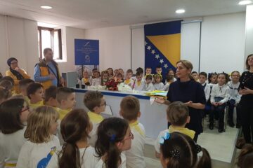 Učenici su poklonili Biblioteci svoje likovne i literarne radove na temu “Moja država BiH”, a školama učesnicama dodijeljene su zahvalnice.