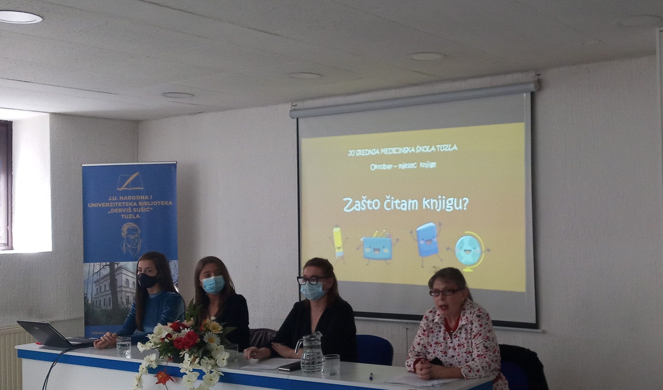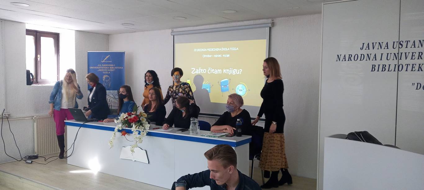 U okviru aktivnosti obilježavanja Mjeseca knjige, Narodna i univerzitetska biblioteka “Derviš Sušić” Tuzla i Aktiv profesora jezika Srednje medicinske škole Tuzla, organizovali su danas, 25.10.2021. okrugli sto na temu: “Zašto čitam knjigu?”.
