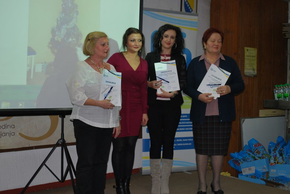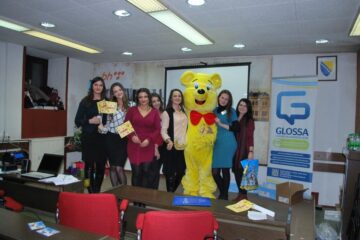 U saradnji Glossa – centra za njemački jezik Tuzla i Biblioteke Derviš Sušić Tuzla sinoć je u velikoj sali upriličena “Velika dječija priredba” na kojoj su učestvovali polaznici Glossa – centra za njemački jezik Tuzla, te djeca plaznici radionica koje Glossa-centar Tuzla organizuje u JU “Naše dijete” Tuzla (obdanište “Pčelica”), zatim djeca učesnici radionica koje Glossa-centar organizuje u JU Zavodu za odgoj obrazovanje osoba sa smetnjama u fizičkom i psihičkom razvoju Tuzla.