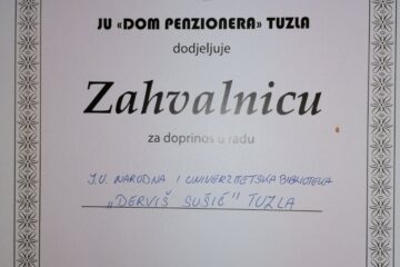 Narodna i univerzitetska biblioteka “Derviš Sušić” Tuzla je u sklopu svojih aktivnosti u okviru obilježavanja oktobra, Mjeseca knjige, pripremila poklone za dvije biblioteke. Jedan poklon koji se sastojao od 125 knjiga različitog sadržaja za djecu osnovnoškolskog uzrasta je uručen Osnovnoj školi “Mehmed-beg Kapetanović Ljubušak” Srnice Donje, Gradačac. Drugi poklon se sastojao od 110 knjiga različitog sadržaja dostavljen je Domu penzionera Tuzla i namijenjen je za potrebe Biblioteke korisnika Doma.
