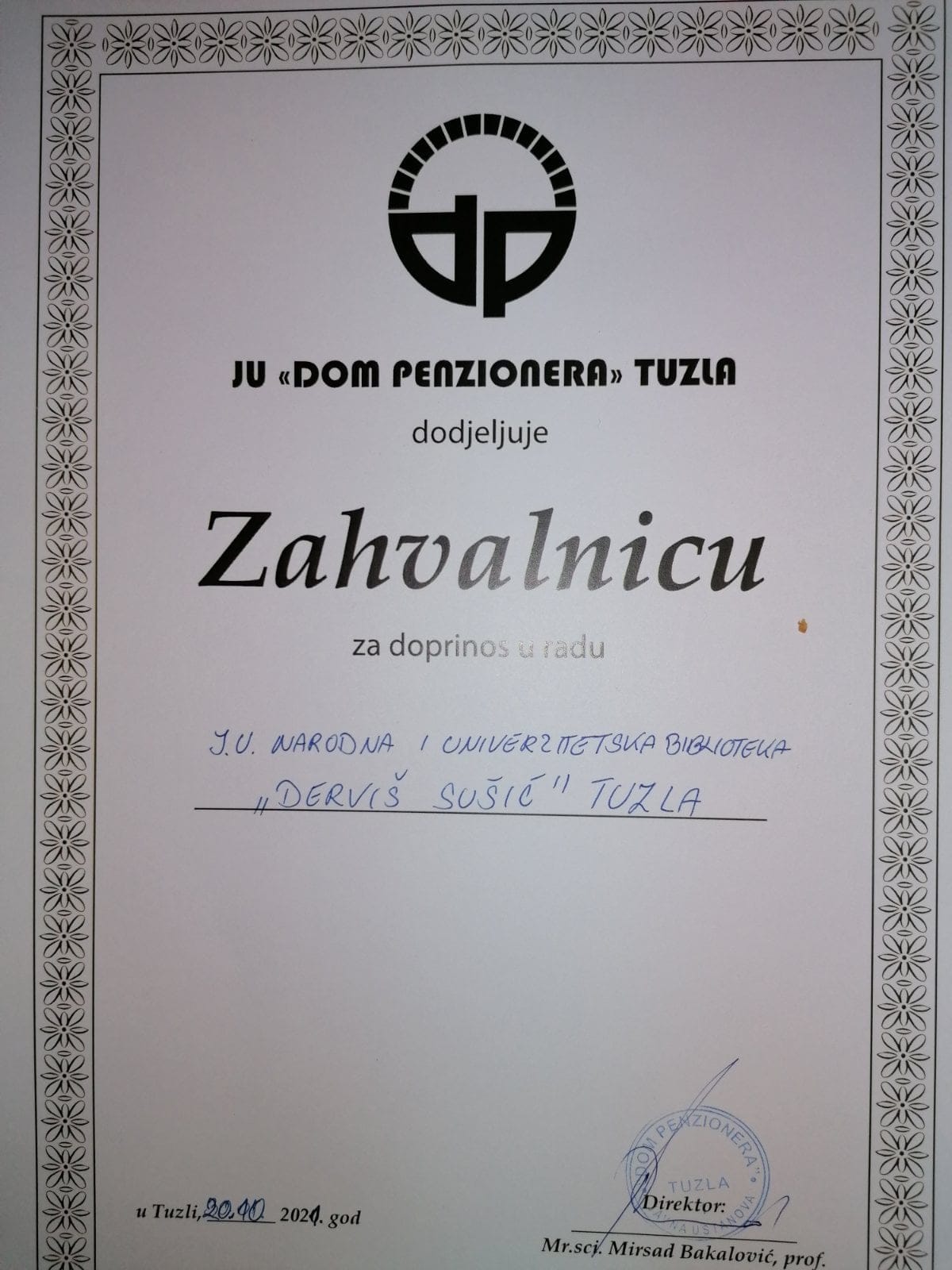 Nadamo se da smo ovim bibliotekama bar malo obogatili knjižni fond i da će ih njihovi korisnici rado čitati. Našoj biblioteci su uručene prigodne zahvalnice od škole u Srnicama Donjim i Doma penzionera Tuzla.