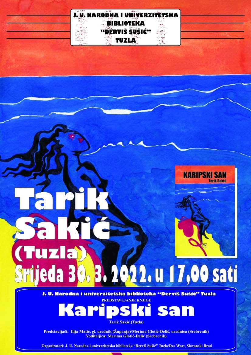 Mladi tuzlanski autor Tarik Sakić objavio je svoj prvijenac knjigu “Karipski san”, a njena promocija će se održati u srijedu 30.marta 2022.godine u 17 sati u Narodnoj i univerzitetskoj biblioteci “Derviš Sušić” Tuzla.
