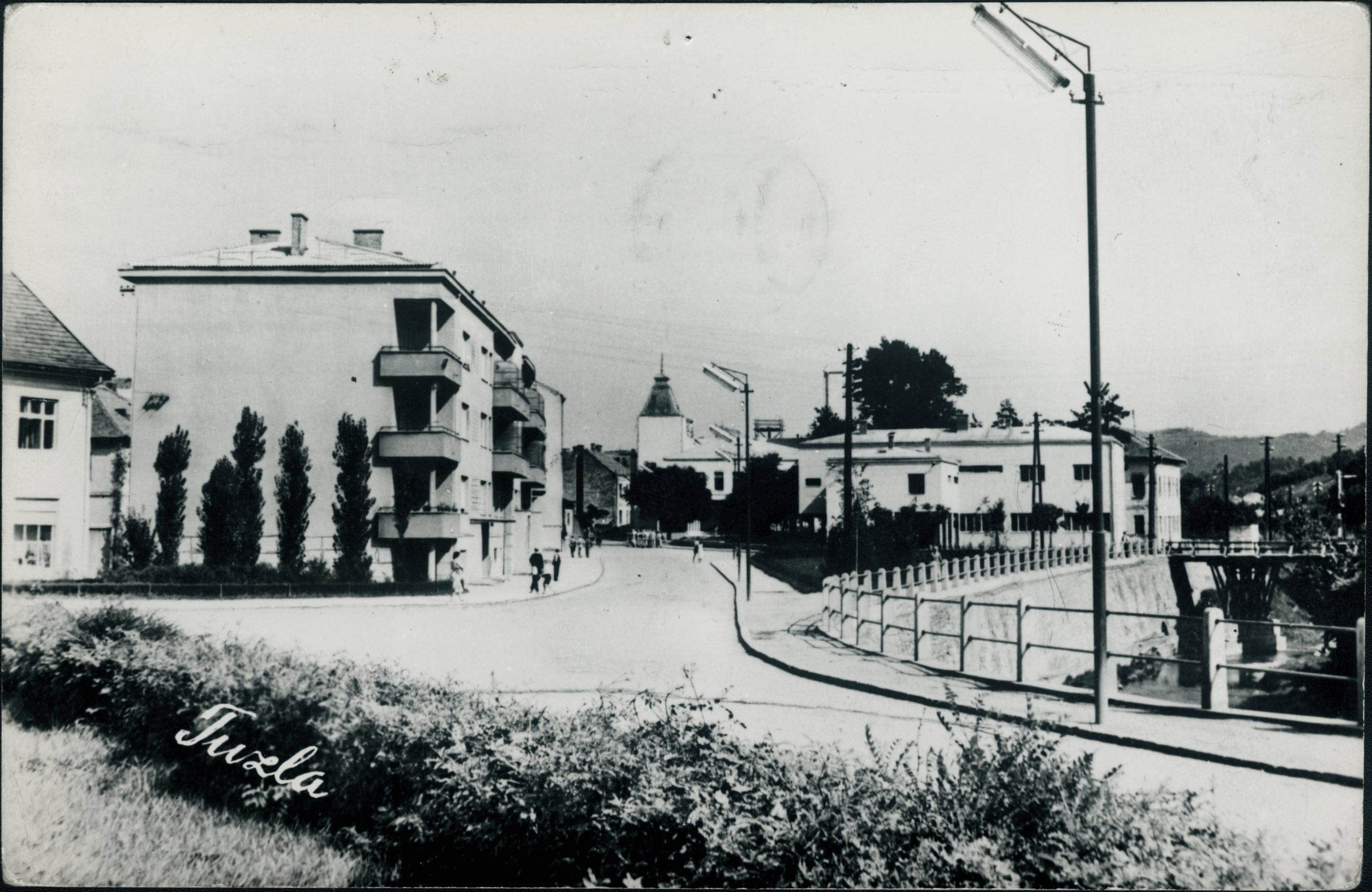 Tuzla, motiv. Narodno pozorište, zgrada društvenopolitičkih organizacija.